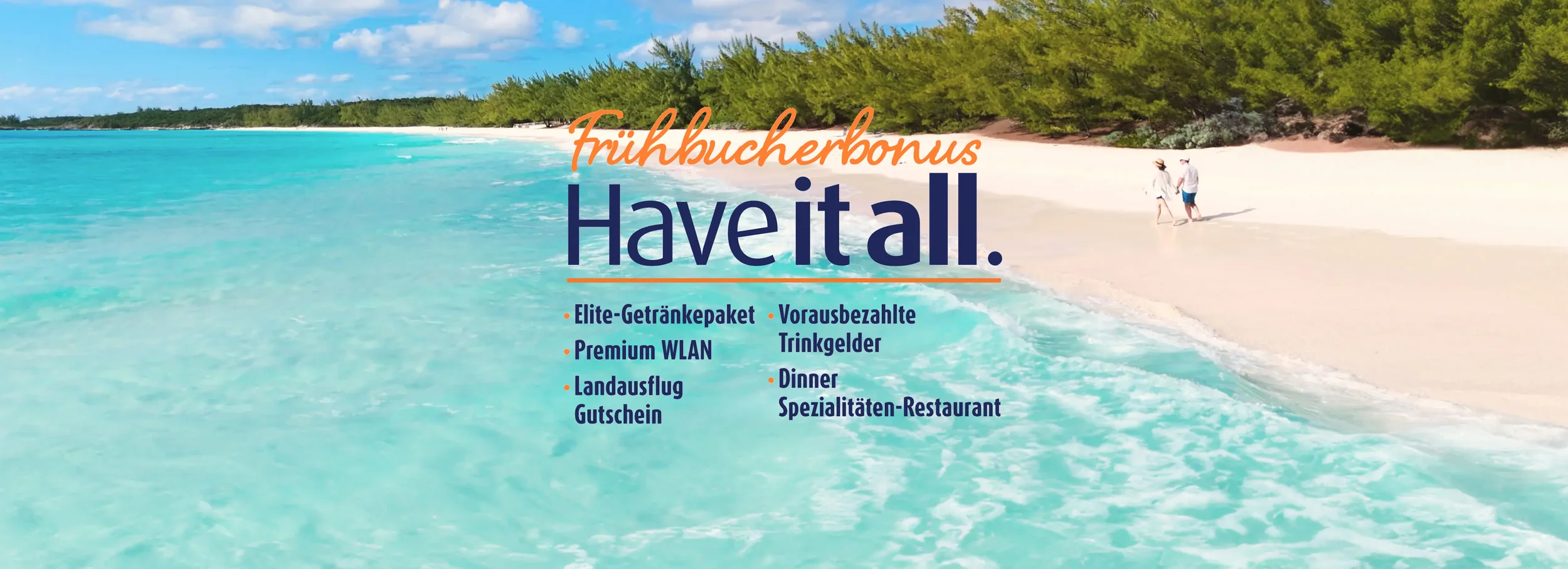 Neben den klassischen Premium-Leistungen an Bord bietet die Reederei mit dem „Have It All“ Paket eine besonders attraktive Möglichkeit, Ihre Reise aufzuwerten und zahlreiche beliebte Extras bereits im Voraus zu inkludieren.