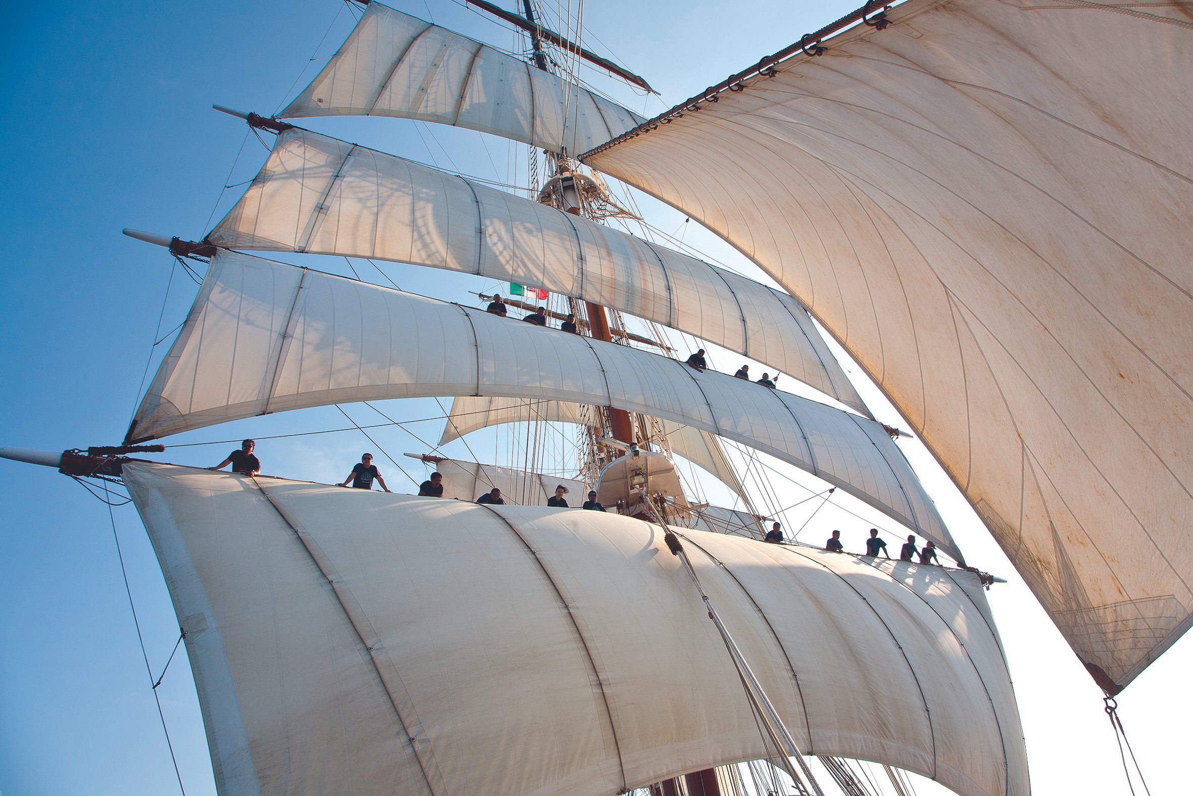 Seit Jahrhunderten gilt das Segeln als die entspannteste Art, neue Horizonte zu entdecken – und an Bord der SEA CLOUDs wird diese Tradition bis heute lebendig gehalten. Die Segel werden noch echte Handarbeit: Matrosen klettern in die Wanten, lösen das schwere Tuch und spannen die Leinen kraftvoll an Deck. Nichts passiert auf Knopfdruck, jeder Handgriff folgt einem jahrhundertealten Ritual, das man hautnah miterlebt. So wird nicht nur der Weg zum Ziel, sondern die Zeit selbst zur Nebensache.